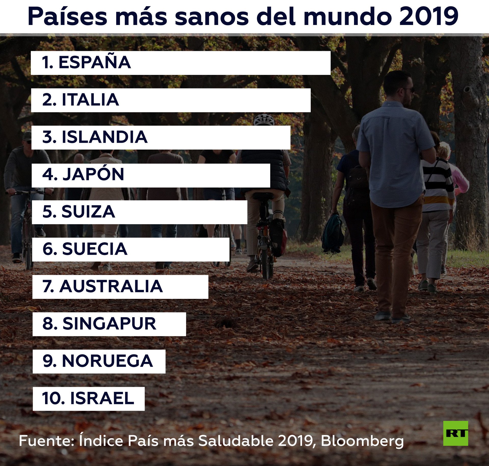 Este año España ha desbancado a Italia como el país más sano del mundo. Así lo atestigua el nuevo Índice de País más Saludable elaborado por Bloomberg, que estudia 169 economías del mundo. En esta entrega, el país íbero ha dado un salto desde la sexta posición, que ocupaba en 2018, hasta liderar el 'ranking'.