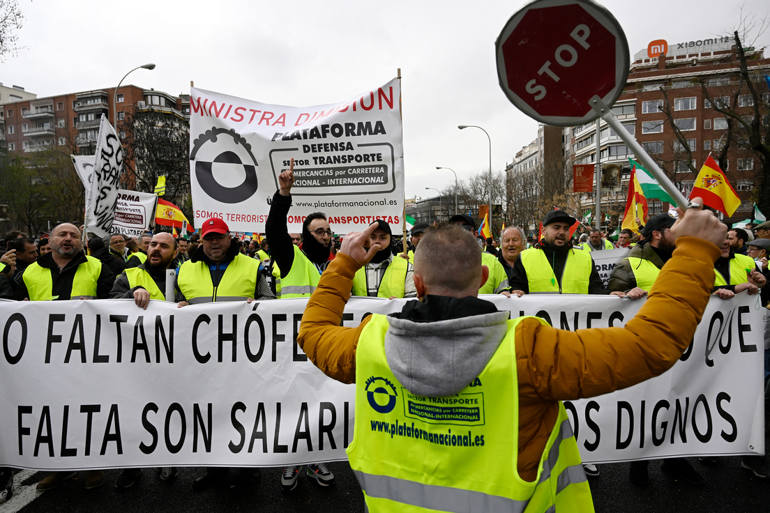 Miles de transportistas llegados de toda España se manifiestan en Madrid contra el Gobierno de Sánchez. Exigen la dimison de la ministra de Transportes y no desconvocarán el paro hasta que se sienten con ellos https://t.co/2WP9rqkzbgpic.twitter.com/cF2sGgkqJU