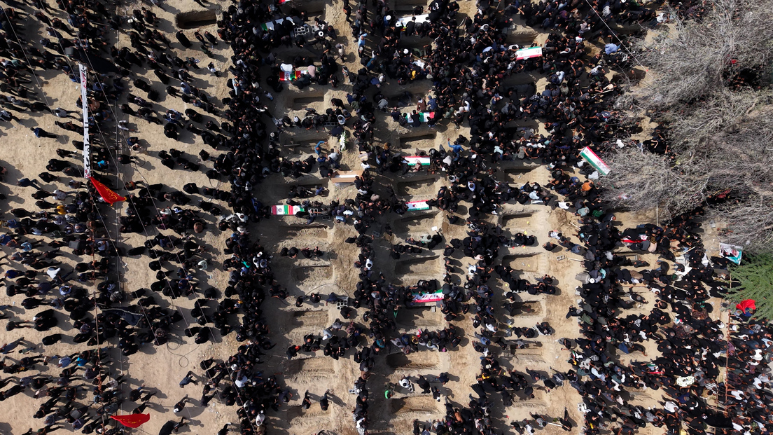 El canciller iraní, Seyed Abbas Araghchi, calificó el hecho como "una enorme masacre" y "un crimen de guerra". Además, compartió una imagen en la que se observan las tumbas de las víctimas del ataque. Posteriormente, las familias y la comunidad se congregaron para rendir homenaje a los fallecidos en una multitudinaria procesión fúnebre, donde también se despidieron de los profesores y padres que perdieron la vida junto a los estudiantes.